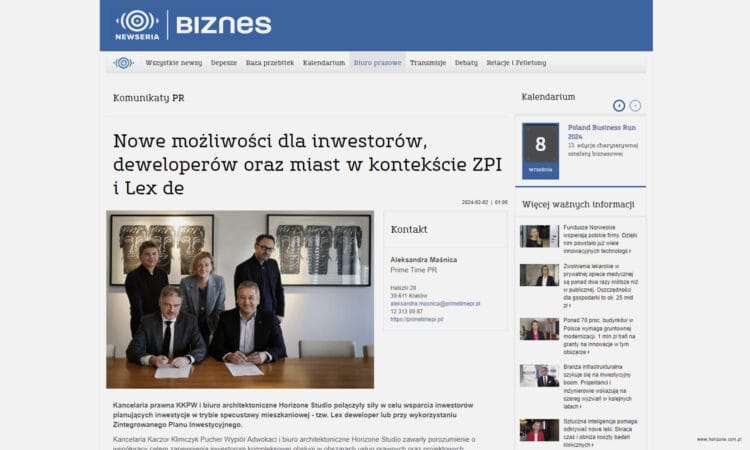 Kaczor Klimczyk Pucher Wypiór - Advocates (KKPW) and Horizone Studio have entered into a strategic cooperation agreement in the context of the lex developer and ZPI law