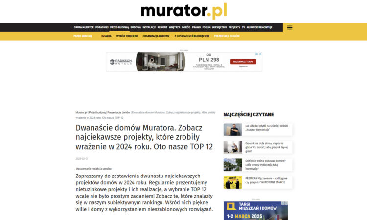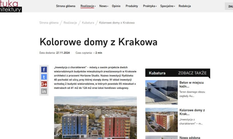 Interview with Bartłomiej Kislielewski, a partner of the Horizone Studio office, was included in the latest article on the Murator Plus portal