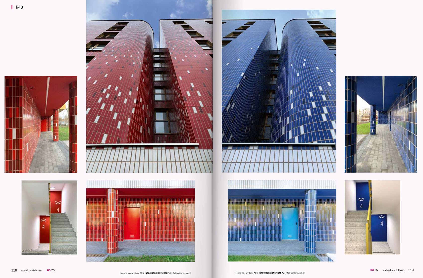 At Rydlówka Street in Krakow, you can admire the unique Nokturn Deweloper investment designed by Horizone Studio. Rydlówka 40 is two 7-storey buildings, in which a total of 65 apartments have been designed, service premises on the ground floor from the street side and a single-level underground garage. The choice of the exterior and interior colors of the buildings was based on the historical connections of the area, and more precisely to the RKS Garbarnia Kraków sports team – whose pitches are located near the investment. The colors harmonize on the neighboring buildings, creating a coherent aesthetic. The materials used are high-quality enameled colored exterior ceramics and light plasters. A definite advantage of the investment is its central location. The buildings are situated on the quiet Rydlówka Street, between the main communication arteries of Krakow: ul. Wadowicka and ul. Kapelanka. Nearby there is an extensive network of tram and bus lines, numerous commercial and service infrastructure and office buildings. In close proximity there are green areas – including the Wilga River Park with a bicycle path and Zakrzówek Park. The investment, commissioned at the beginning of 2024, was sold in its entirety even before the completion of construction.