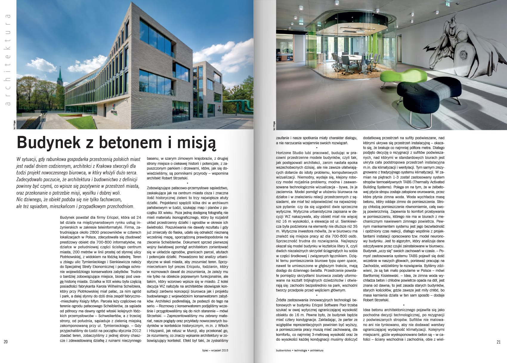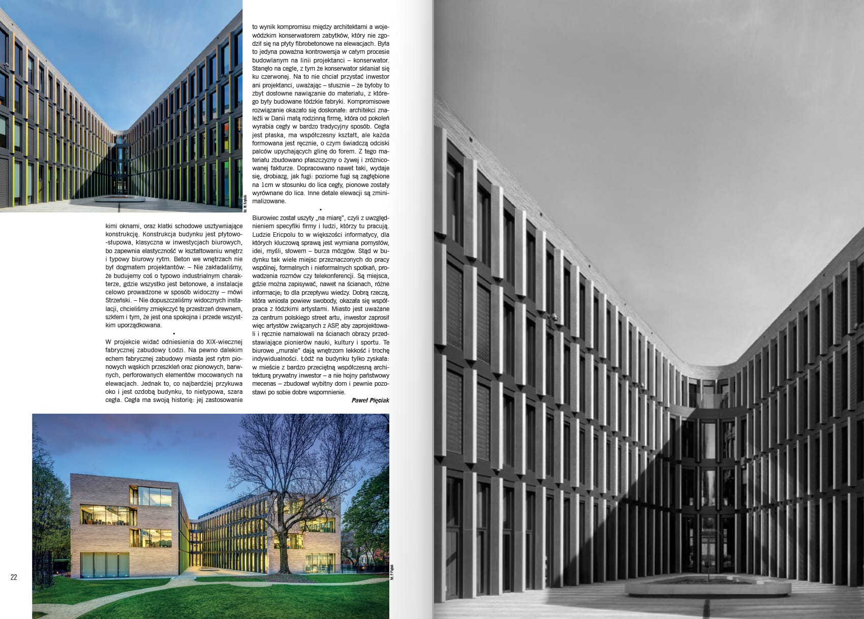 In the second text published in BTA (pp. 22-24), by Pawel Pięciak, one can learn about his impressions from a visit to the recently completed Ericpol Software Pool office building in Lodz :