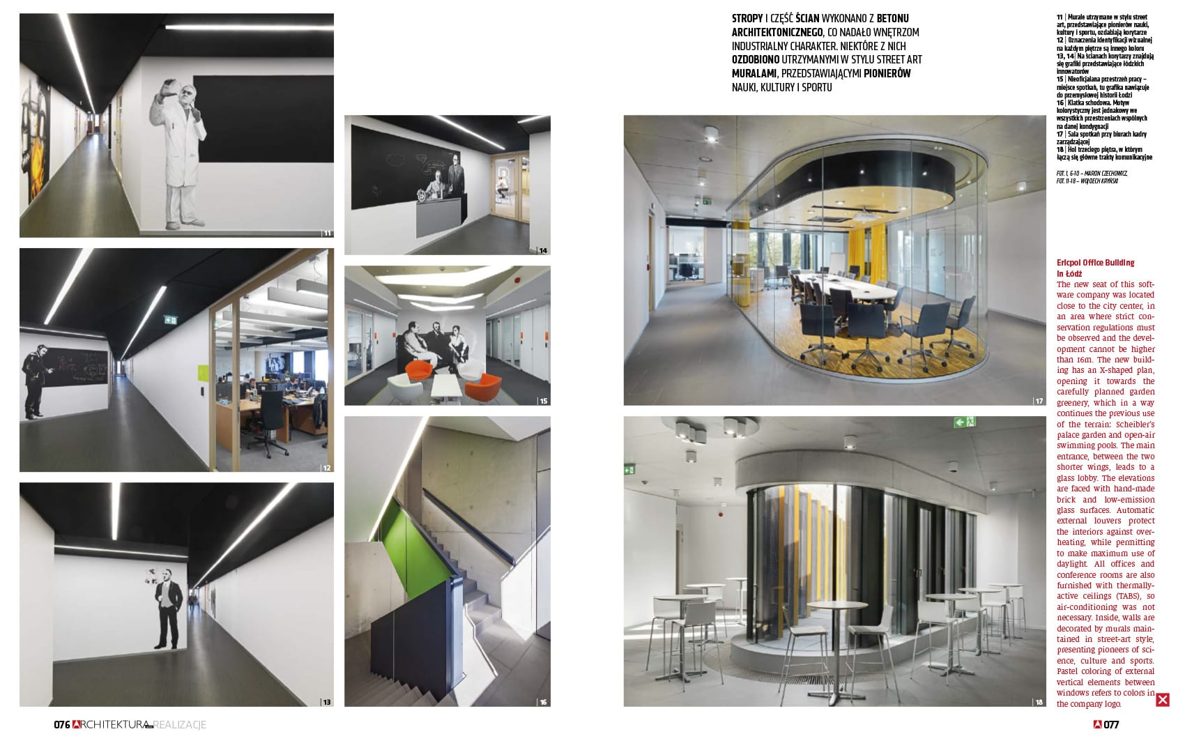 The January issue of Architektura-Murator (01’2015) published an article by Horizone Studio designers describing the design and implementation of the Ericpol Software Pool office building in Lodz, Poland. The article is illustrated with many photos from the implementation stage and reveals the behind-the-scenes of the project’s creation and tells about the realization.