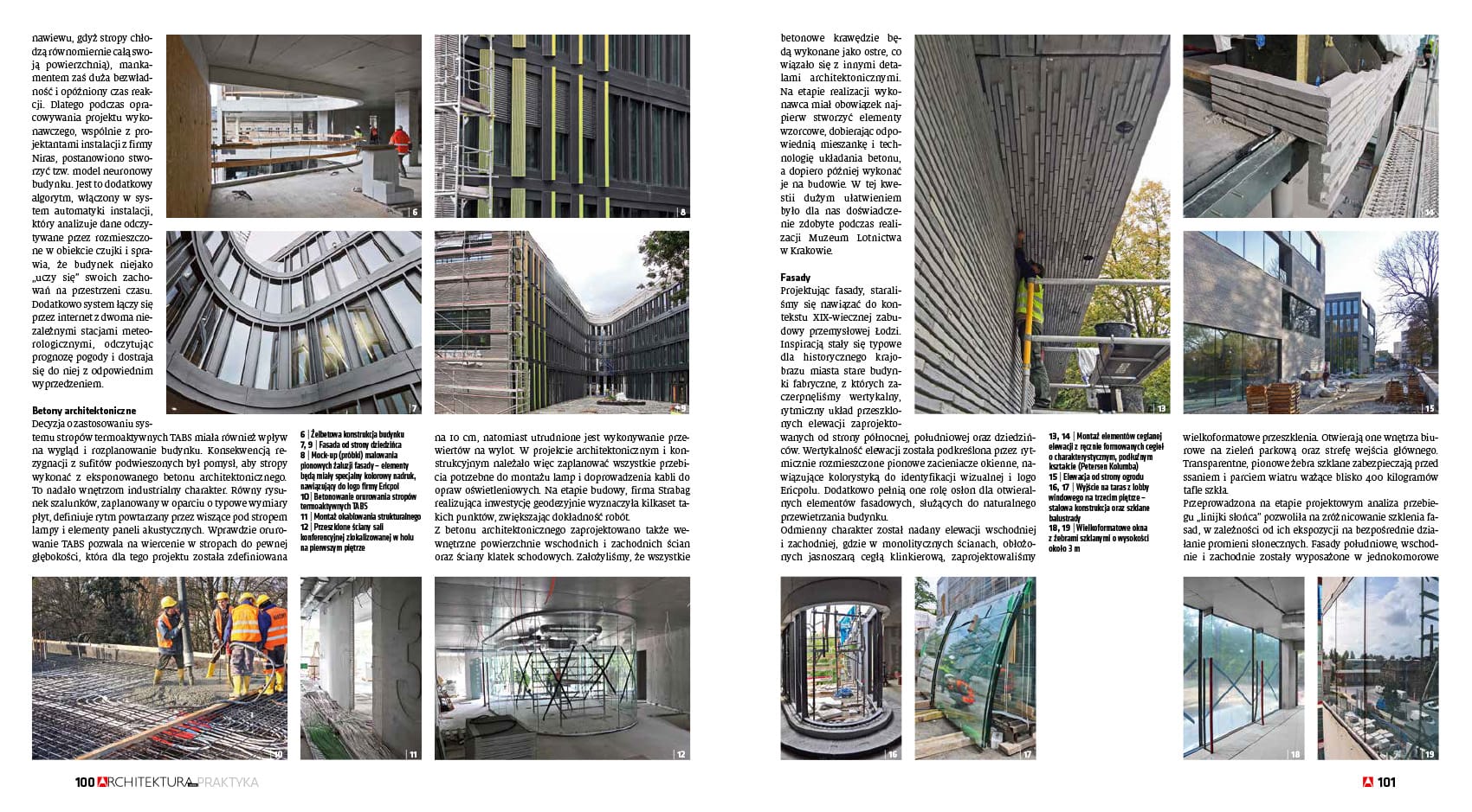 The five-page text appeared in the “Workshop” section, which is intended to be an account by designers of the design and construction process of the most interesting buildings in Poland (previous issues of this section featured such buildings as the National Stadium in Warsaw, Prosta Tower, the expansion of the Raczynski Library, the Museum of the History of Polish Jews, the New Silesian Museum, the Kantor Museum in Krakow, the Szczecin Philharmonic, the Shakespeare Theater in Gdansk or the International Congress Center in Katowice).