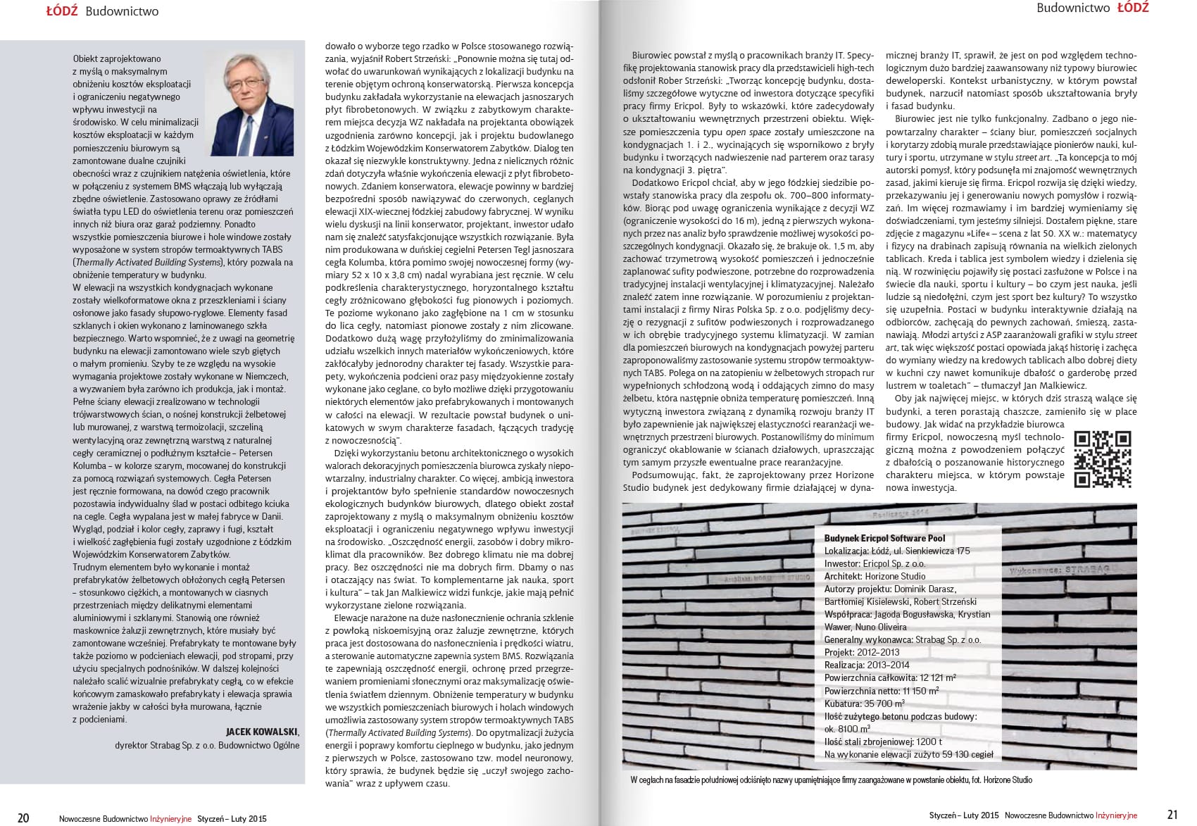 An article written by Ms. Maria Szruba about the Ericpol office building in the February issue of the magazine MODERN BUILDING INDUSTRY (01-02’2015).