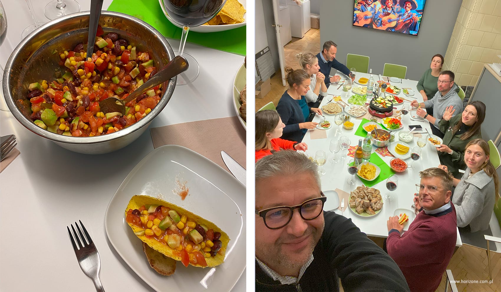 Yesterday evening at Horizone Studio turned into a real culinary journey! We took on the role of Mexican cuisine experts and prepared delicious dishes together! It was not only cooking together, but also a great opportunity for team integration. Between cutting vegetables and preparing tacos and a delicious dessert, there was time for conversations, laughter, small snacks and of course – a game that added even more fun!
