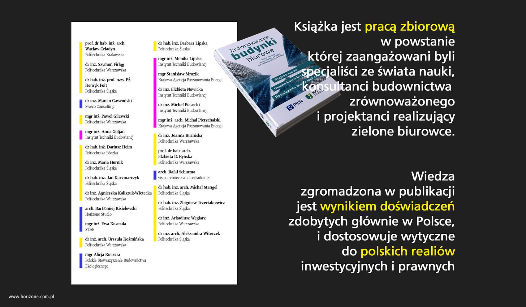 “The authors recognized the need to collect and coherently present a very wide range of technical, economic, ecological and social issues that are associated with sustainable construction.”Prof. Tadeusz Skoczkowski, Ph.D., PW