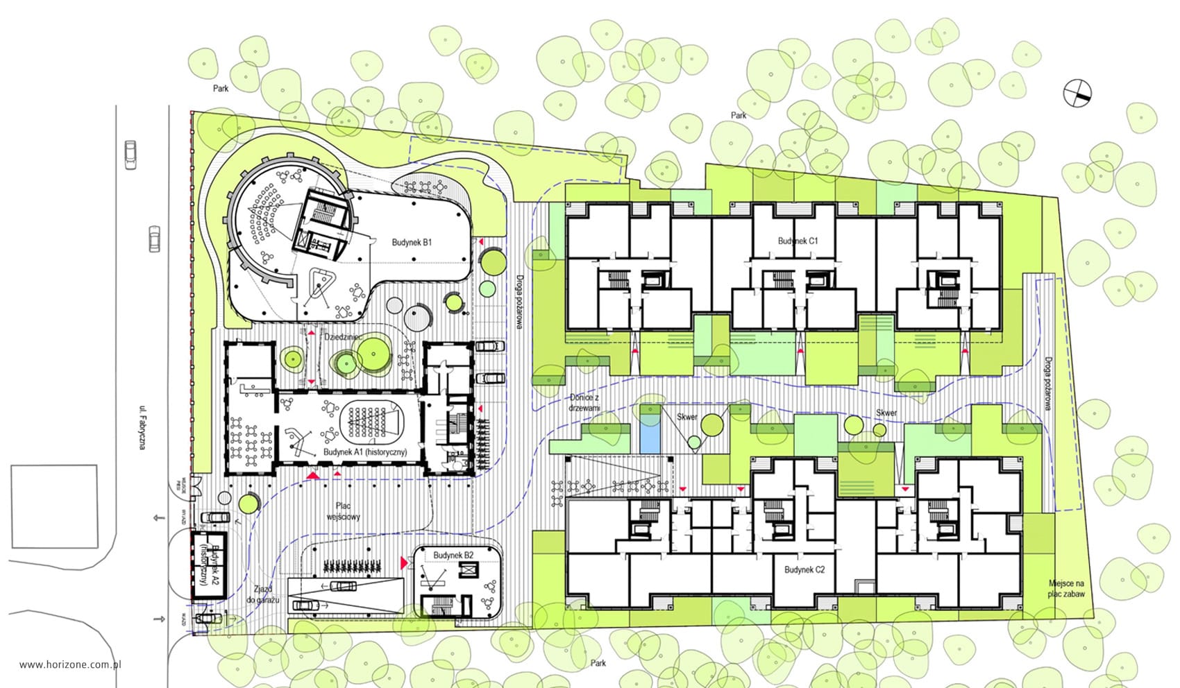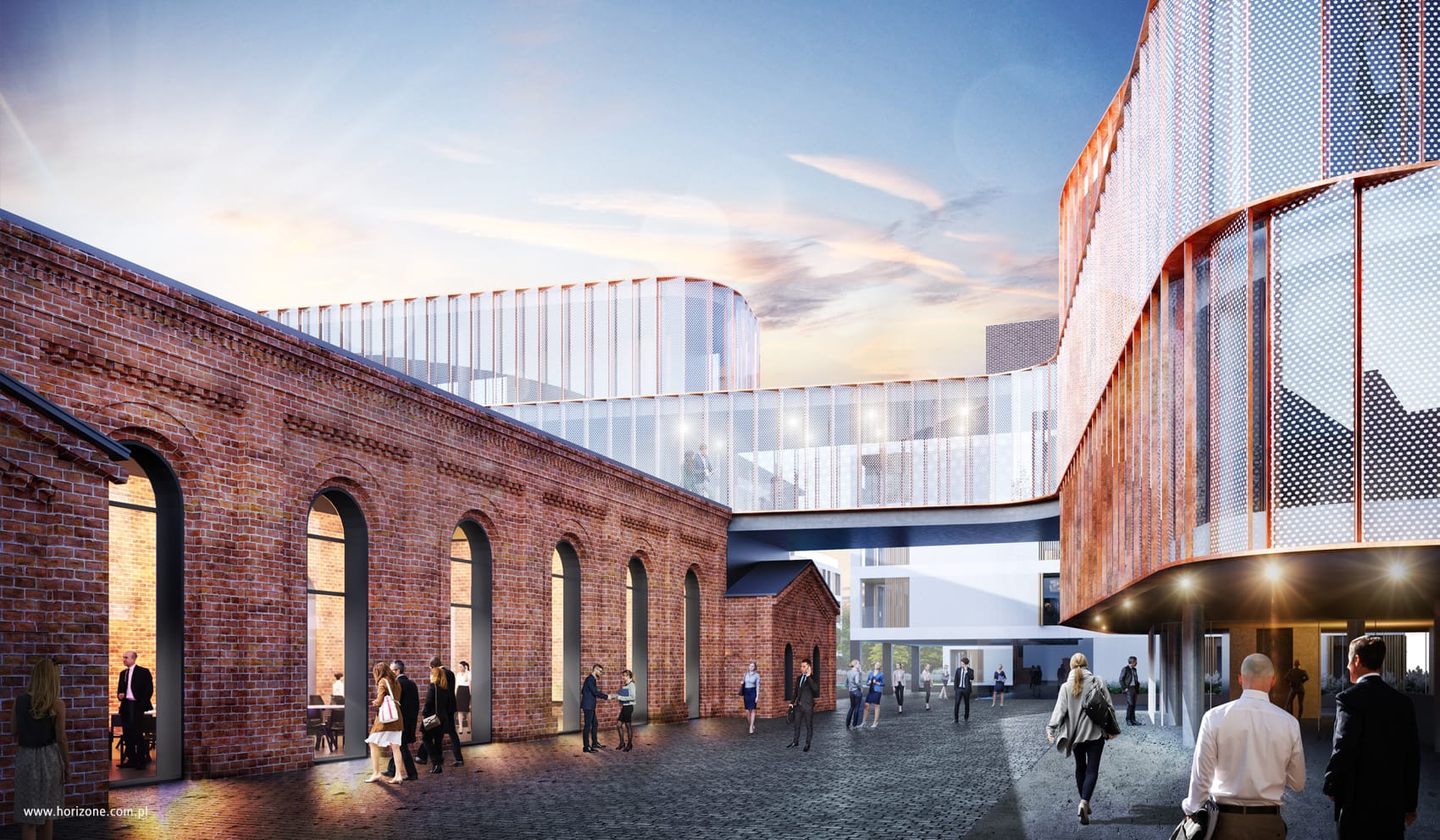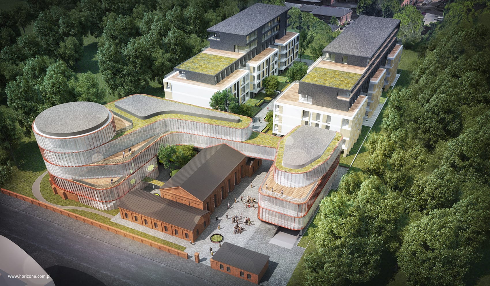Modern development combined with revitalization of historic building complex