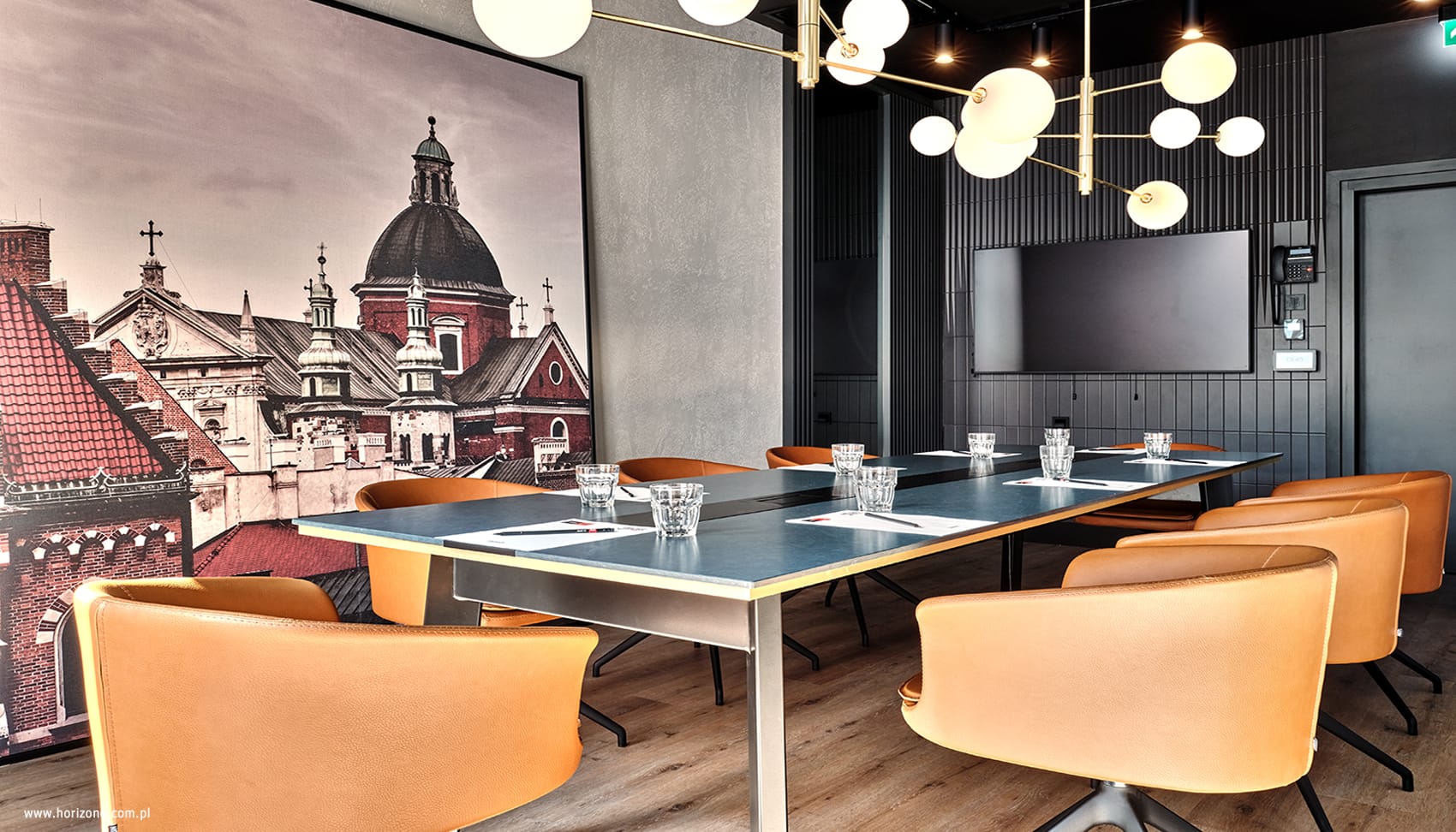 Opposite the entrance, the main point identifying the hotel is a sculpture of a dragon, which refers to the Wawel Dragon.
