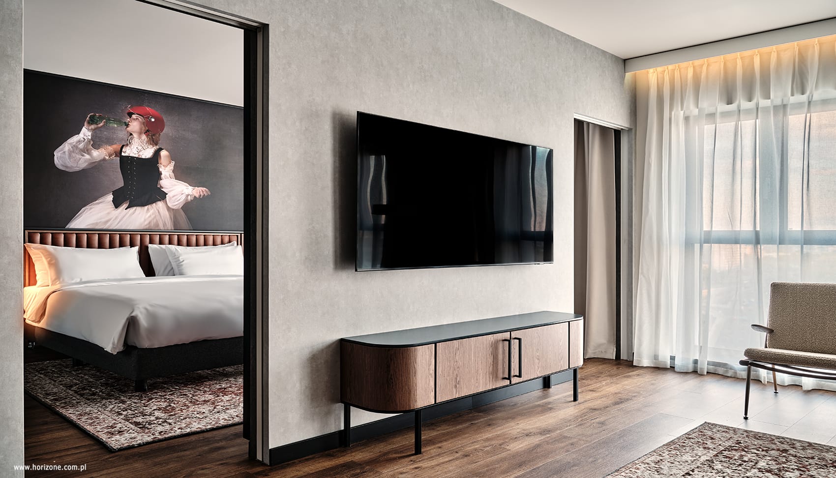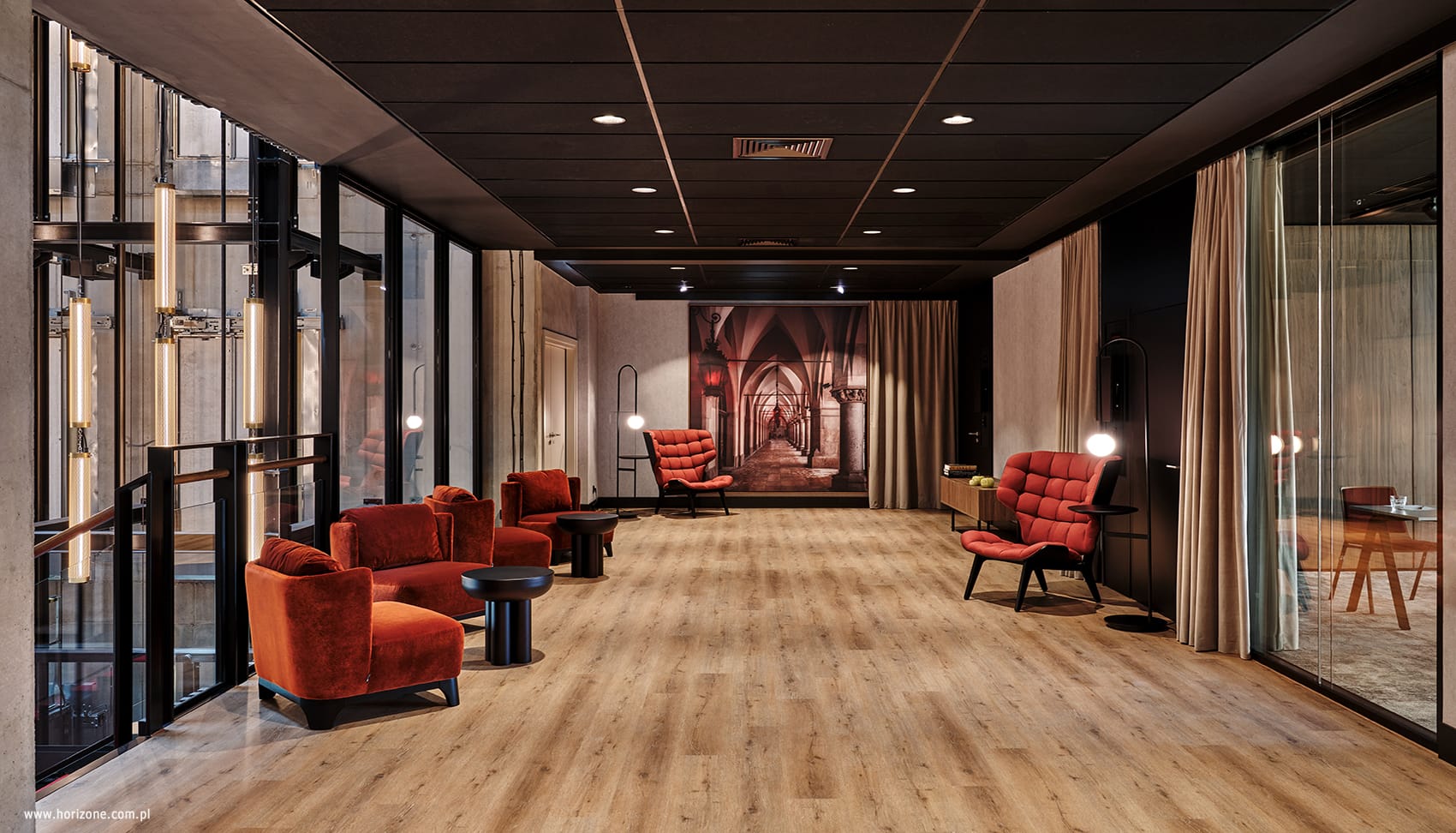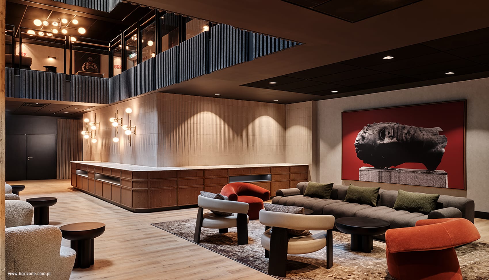 The designed interiors also include numerous finishes such as curtains, graphics or acoustic lamella panels, which have a significant impact on the overall acoustics of the designed interiors.