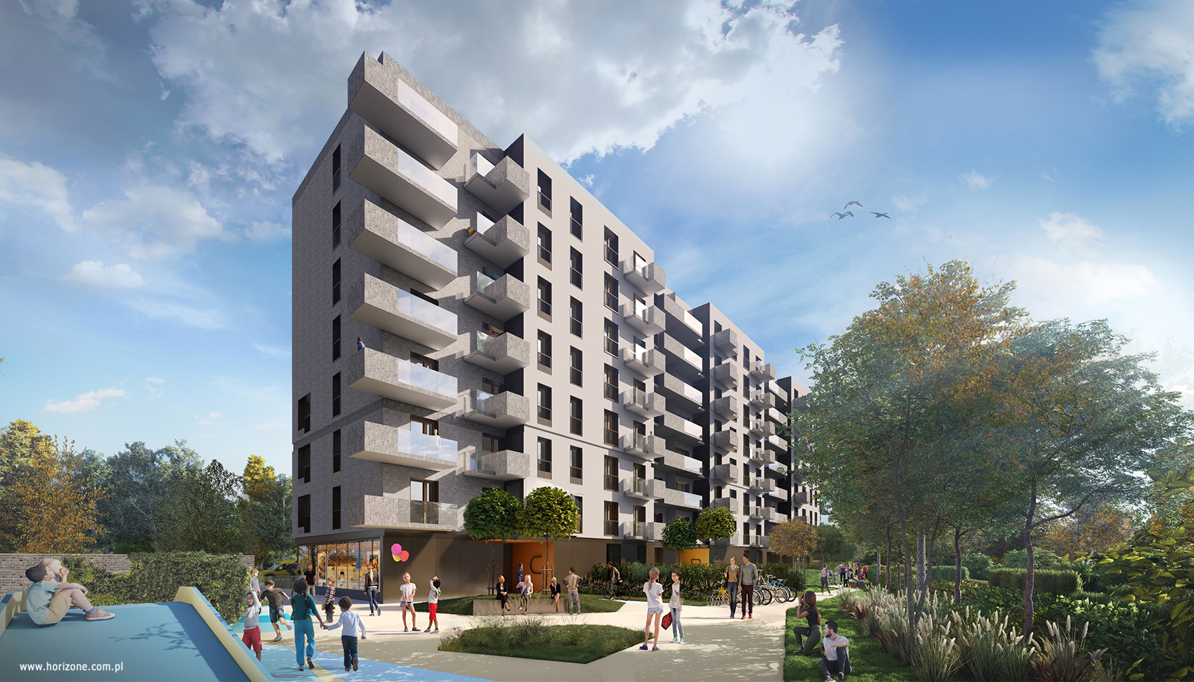 On the ground floor, it was planned to locate service premises, with the potential for catering, among others. In the southern part, between the building and the border of the plot, it was planned to create private gardens and a recreational area with a playground.