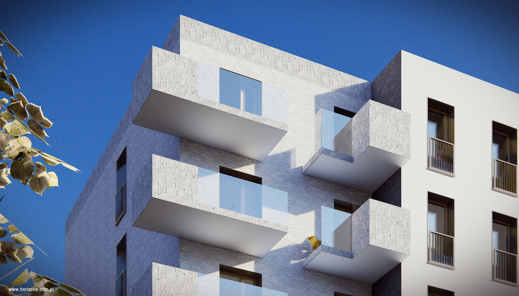 The shape of the building and the orientation towards the cardinal directions and the urban surroundings imposed the use of a staircase system in the building. The concept assumed three staircases, each serving 4-5 apartments on the floor, which was to ensure the intimate character of the building and comfort of use. The apartments were designed with functionality, appropriate lighting and arrangement in mind. A pram storage room and technical rooms were also planned on the ground floor.
