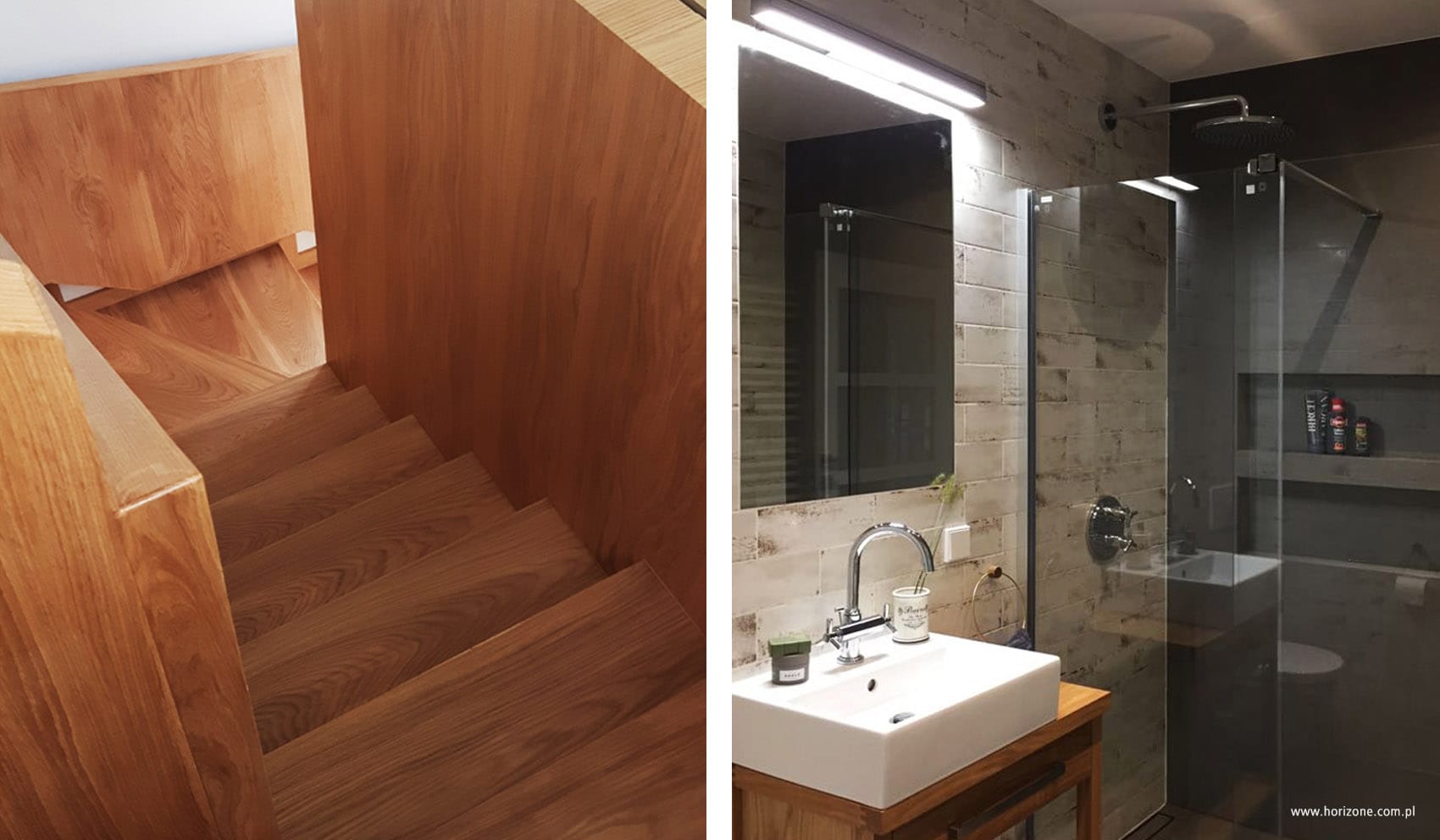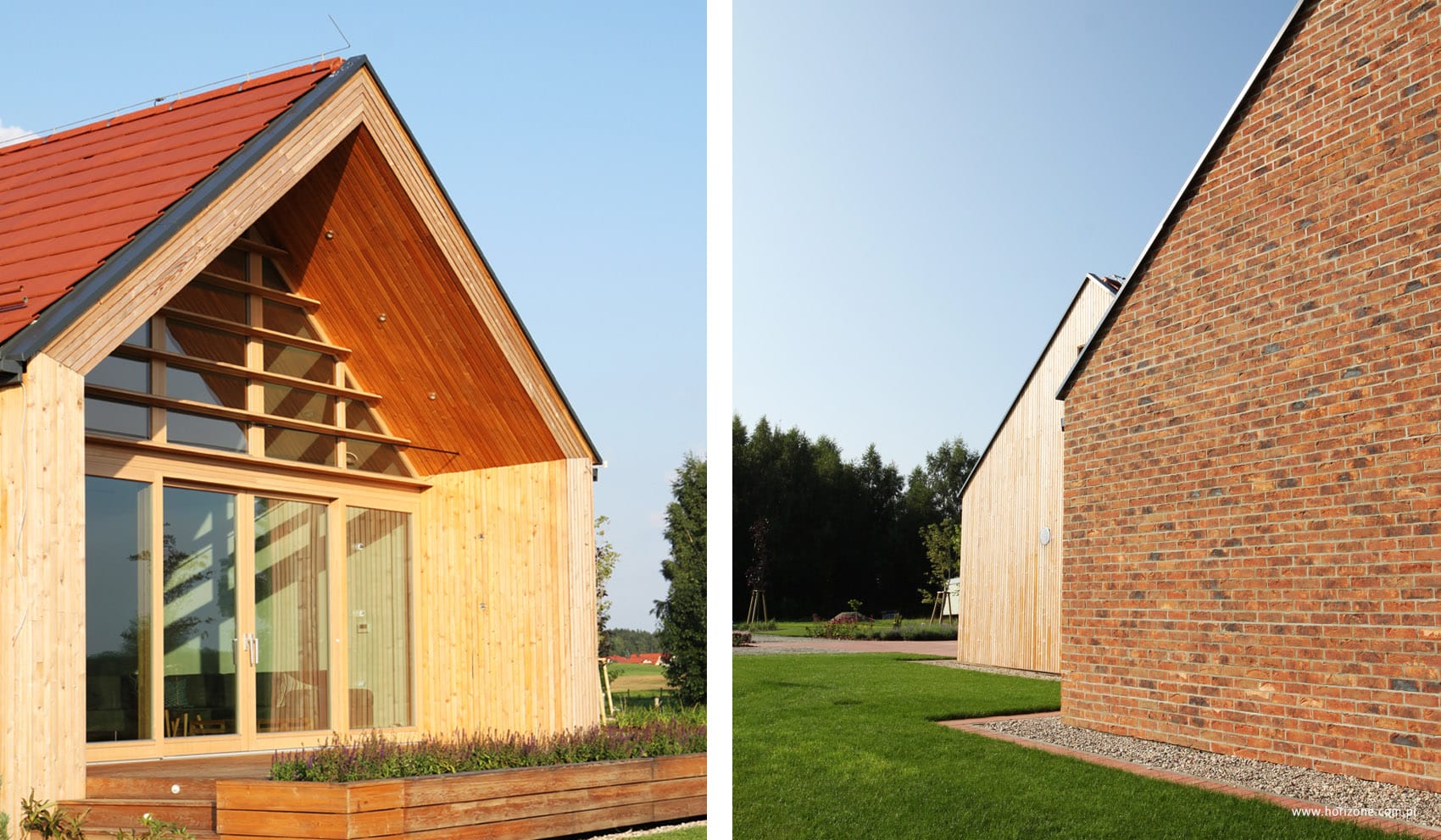 The development conditions described in detail the finishing materials that need to be used in this location. The facade of one of the parts is finished with hand-formed brick, which is typical of traditional Warmian architecture. The second finishing material – Siberian larch – corresponds well with the surrounding nature.